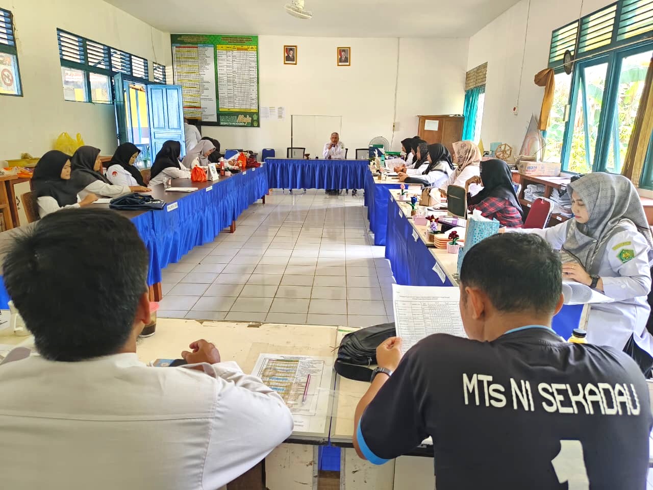 Kegiatan rapat dipimpin langsung oleh Kepala MTs Negeri 1 Sekadau, Samsul Mu’arif, S.Ag, dan berlangsung dengan suasana tertib serta penuh semangat kebersamaan. Adapun agenda utama rapat meliputi pembahasan persiapan semester genap serta pembagian jam mengajar guru sesuai dengan ketentuan dan kebutuhan madrasah.