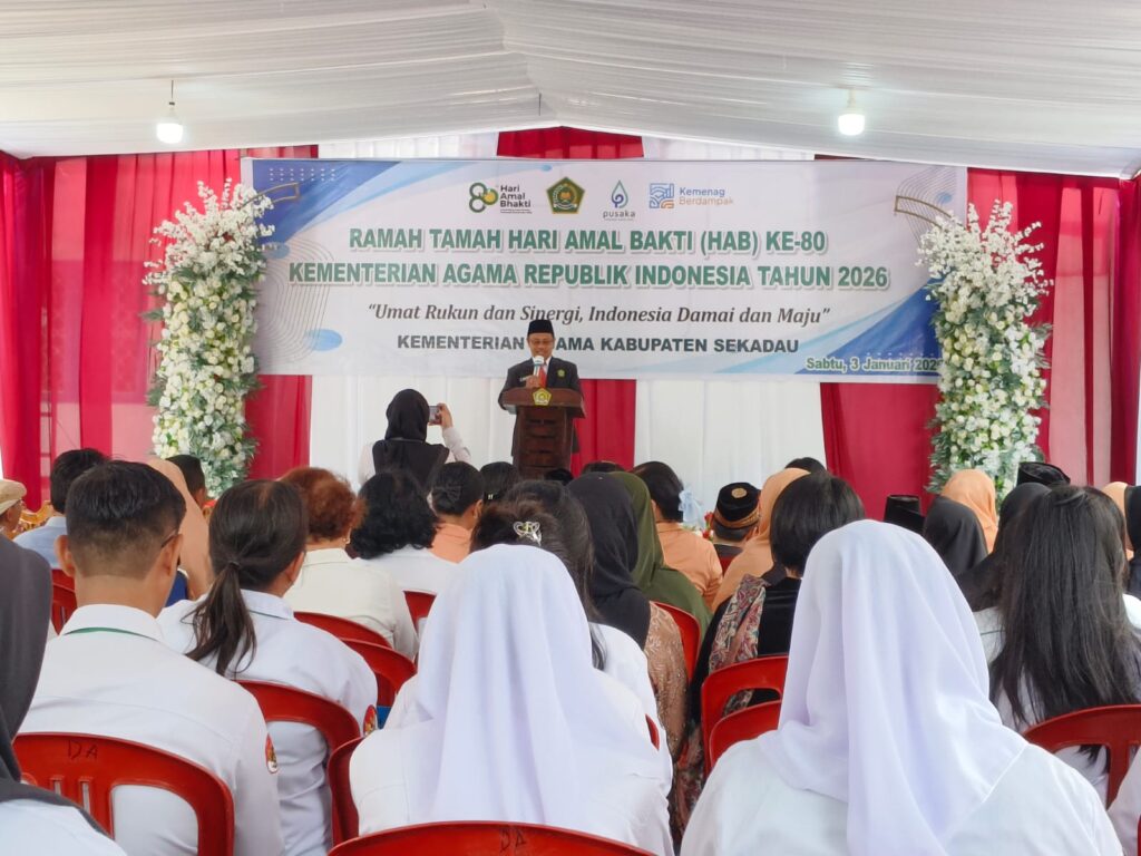 Kegiatan Hari Amal Bakti ke-80 diawali dengan upacara bendera yang berlangsung dengan khidmat dan tertib. Upacara ini diikuti oleh jajaran pegawai Kementerian Agama, para kepala madrasah, guru, serta perwakilan peserta didik dari berbagai satuan pendidikan madrasah, di antaranya MAN Sekadau, MTsN 1 Sekadau, MIN Sekadau, dan MTs Ar-Rahmah Sekadau. Setiap madrasah mengirimkan perwakilan siswa sesuai dengan undangan resmi dari panitia pelaksana.